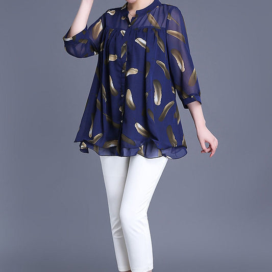 Women's 3/4 Sleeve Casual Printed Chiffon Blouse Summer Fashion New Single-breasted Thin Loose Pullovers Shirt Female Clothing