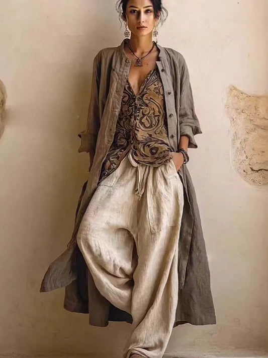 Cotton Linen Cardigan Vacation 3-Piece Set