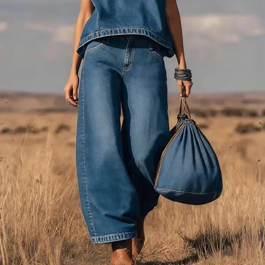 Vintage Wide leg denim pant and vest